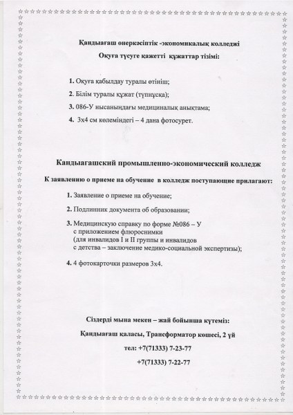 «ҚАНДЫАҒАШ ӨНЕРКӘСІПТІК-ЭКОНОМИКАЛЫҚ КОЛЛЕДЖІ»