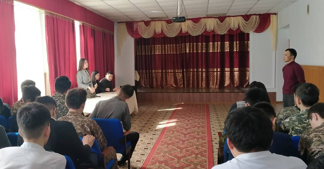 «Волонтерлар жылына» орай аудандық Жастар арасында дін мәселелері және қоғаммен байланыс орталығының мамандарымен бірге колледждің белсенді волонтерлары Ш.Сатаев,А.Бекмағамбетова және А.Қойшыбай колледждің 1-курс студенттерімен кездесу өткізіп,волонтерлардың мақсаты,олардың қатарын көбейту мақсатында түсіндіру жұмыстарын жүргізді.
