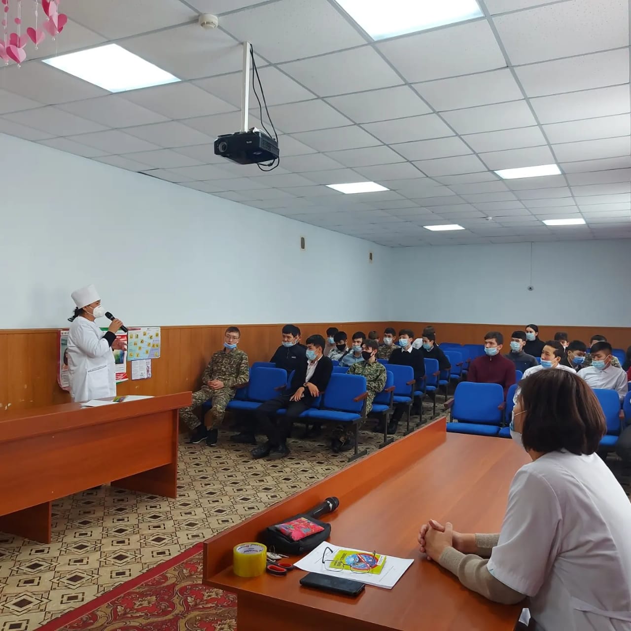 Аудандық аурухана бөлімінен С.Саткановнамен колледж медбикесі Т.Темирбаеваның қатысуымен "Жыныстық жолмен берілетін инфекциялық аурулар" тақырыбында студенттерге кездесу өткізілді