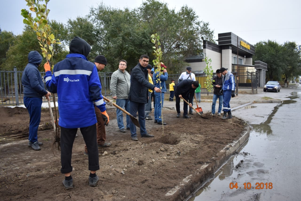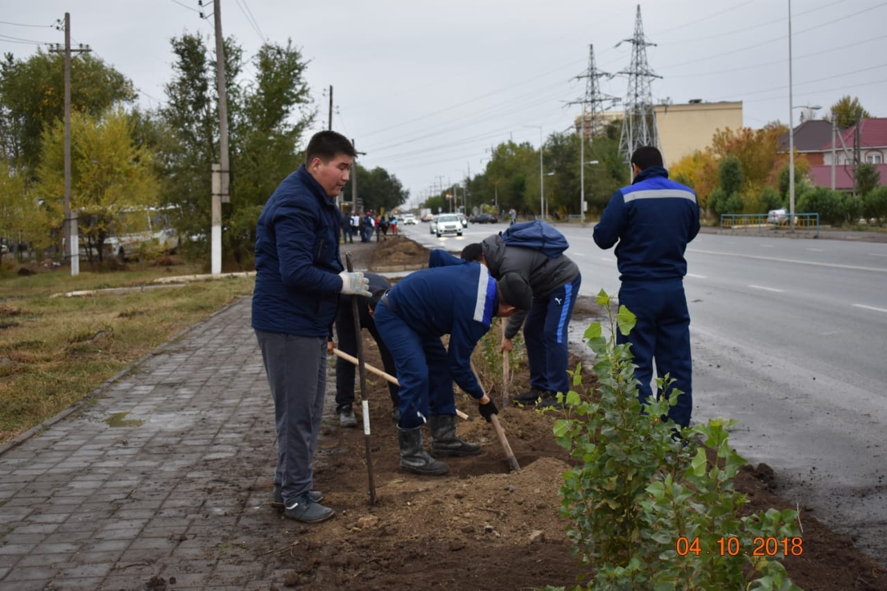 Мұғалжар ауданы күндері қарсаңында Қандыағаш-өнеркәсіптік экономикалық колледжінің оқытушылары мен студенттері Ақтөбе қаласындағы Ғ.Жұбанова көшесінде тазалық жұмыстарына атсалысып, көшеттер отырғызуға белсене араласты.