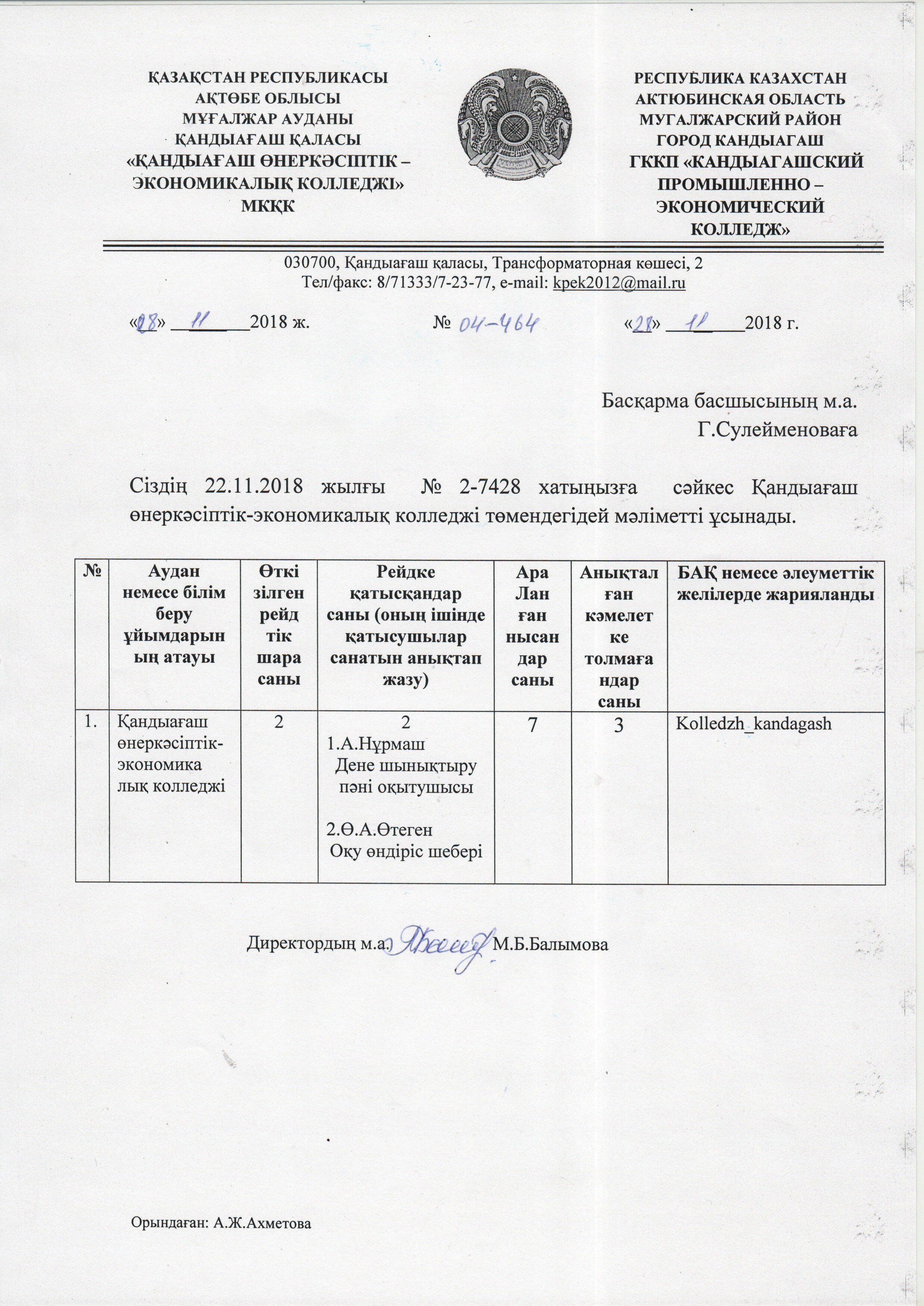 23-25 қараша аралығында облыс терроториясында "Түнгі қаладағы балалар" атты жеделшарасына колледж оқытушылары ат салысты