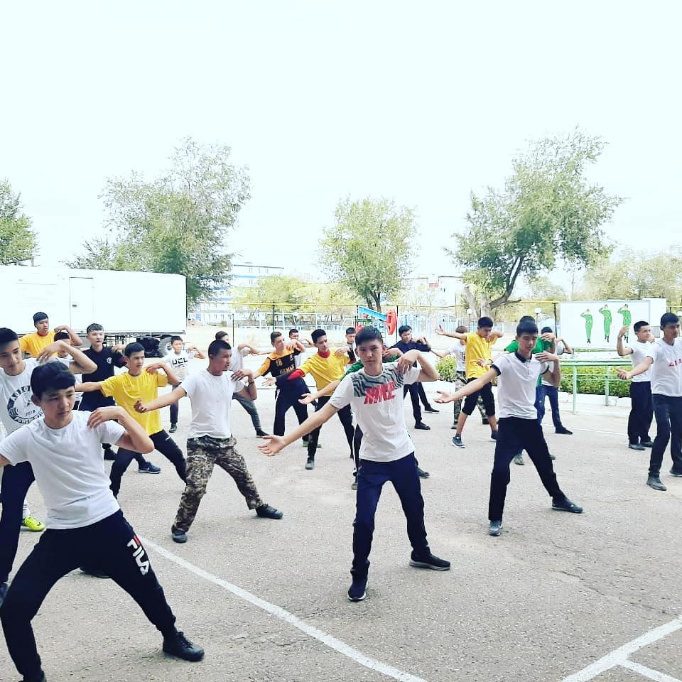Денсаулық фестивалі күні қарсаңында дене шынықтыру пәні оқытушылары колледж студенттерімен спорттық шара өткізуде.