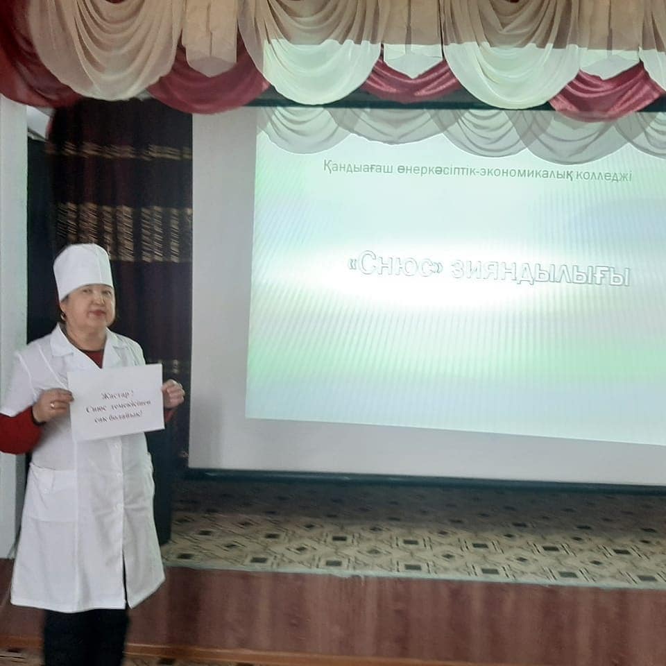Колледж студенттерінің қатысуымен «Балалар мен жасөспірімдердің арасында «СНЮС» шегуге арналмаған темекі және темекісіз өнімдердің , сонымен қоса энергетикалық конфеттер мен сағыздарды пайдалануы алаңдатуда» атты іс-шара өтті. Шара барысында Мұғалжар ауадндық ауруханасының дәрігері Светлана Саткановна және колледж медбикесі Тұрсын Мешітбайқызы студенттерге «СНЮС-тің» зияндылығы туралы түсіндіріп, бейнебаяндар көрсетілді.