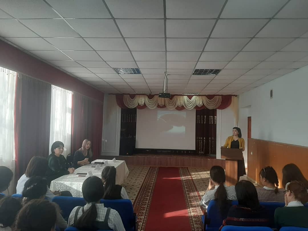 Колледж медбикесі Т.Темірбаева және педагог-психолог Г.Медетованың ұйымдастыруымен «Қыз бала тәрбиесі – ұлт тәрбиесі» тақырыбында дөңгелек үстел өткізіліп, арнайы шақырылған қонақтарымыз аудандық емхананың акушер-гинекологы Д. Сагинова мен «Жастар арасында дін мәселелері және қоғаммен байланыс орталығының маманы Д.Курманова қазақ қызының болмысы, қыз бала тәрбиесі, ерте жүктіліктің алдын алу т.б. туралы сөз қозғап, қыз балалар көкейлерінде жүрген сұрақтарына жауап алды.