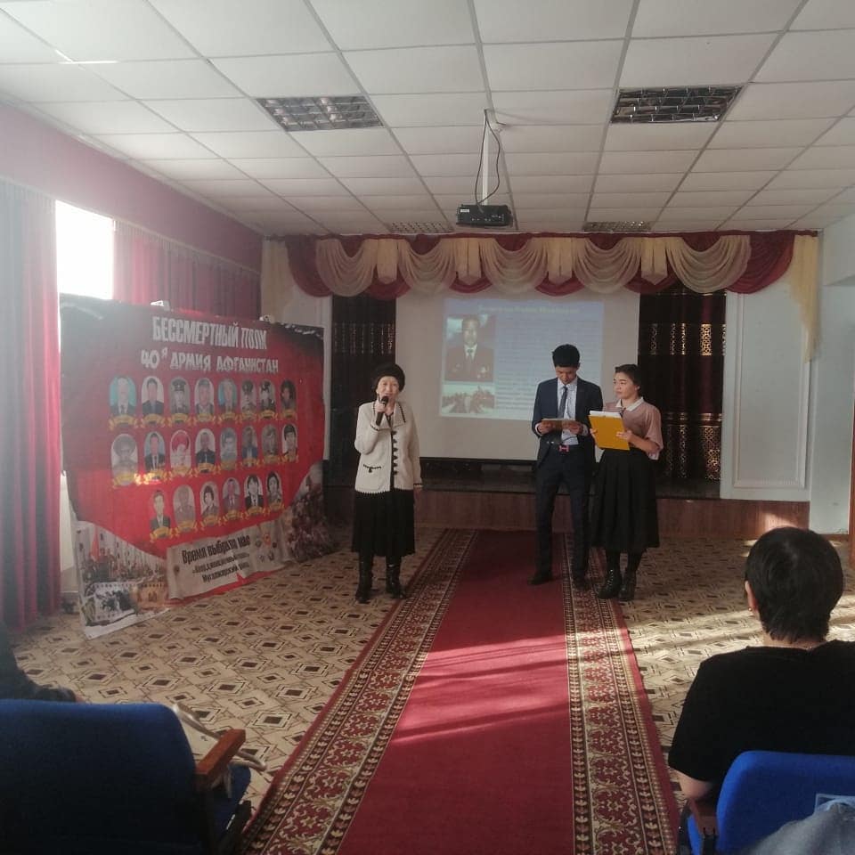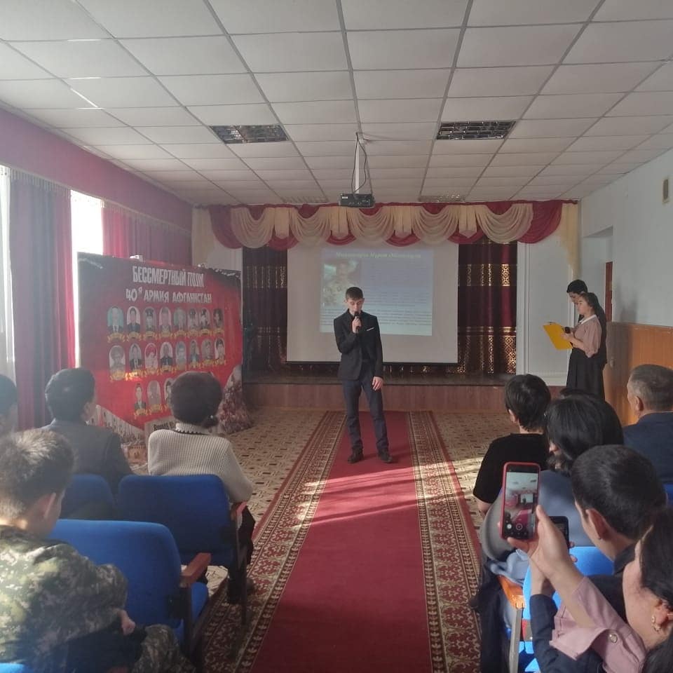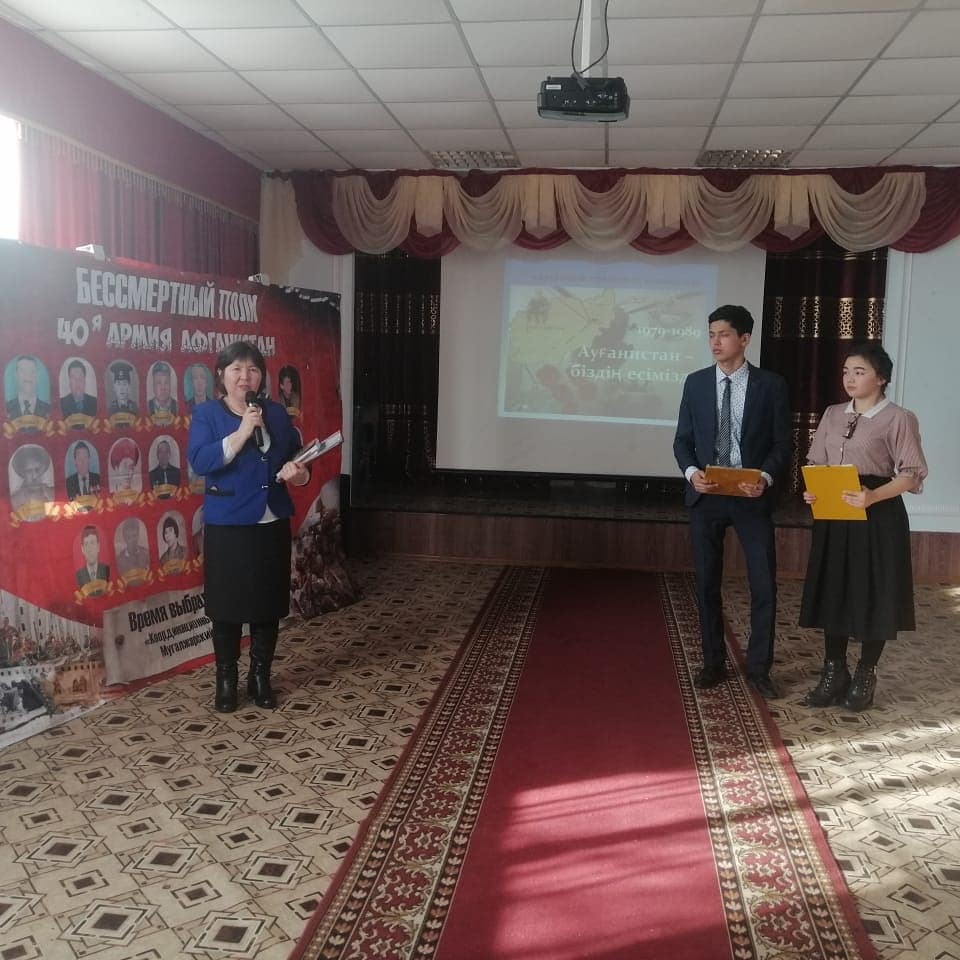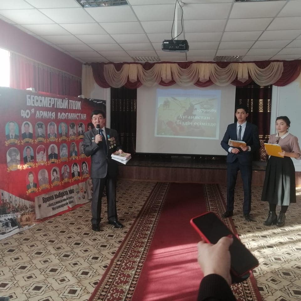Өз Отанына шексіз берілген, патриоттық рухы жоғары, қайсар жауынгер ағалар ерлігін үлгі ету, Ауған соғысында опат болған боздақтар рухына тағзым етуге және есімдерін қастерлеуге тәрбиелеу мақсатында №35 топ «Газ шаруашылығныда қалпына келтіру жұмыстарының слесарі» мамандығының оқу – өндіріс шебері М.Байжанова және аудандық тарихи-өлкетану мұражайы басшысы Ш.Абдразаков ұйымдастыруымен «Ауғанның асуында от кешкендер» тақырыбында өткізілген ашық тәрбие сағатына Ауған соғысының ардагерлері Ж.Сағынтаев және Б.Маханов арнайы шақырылды. Шараға ата-аналар да қатысты. 12.02.2020 ж