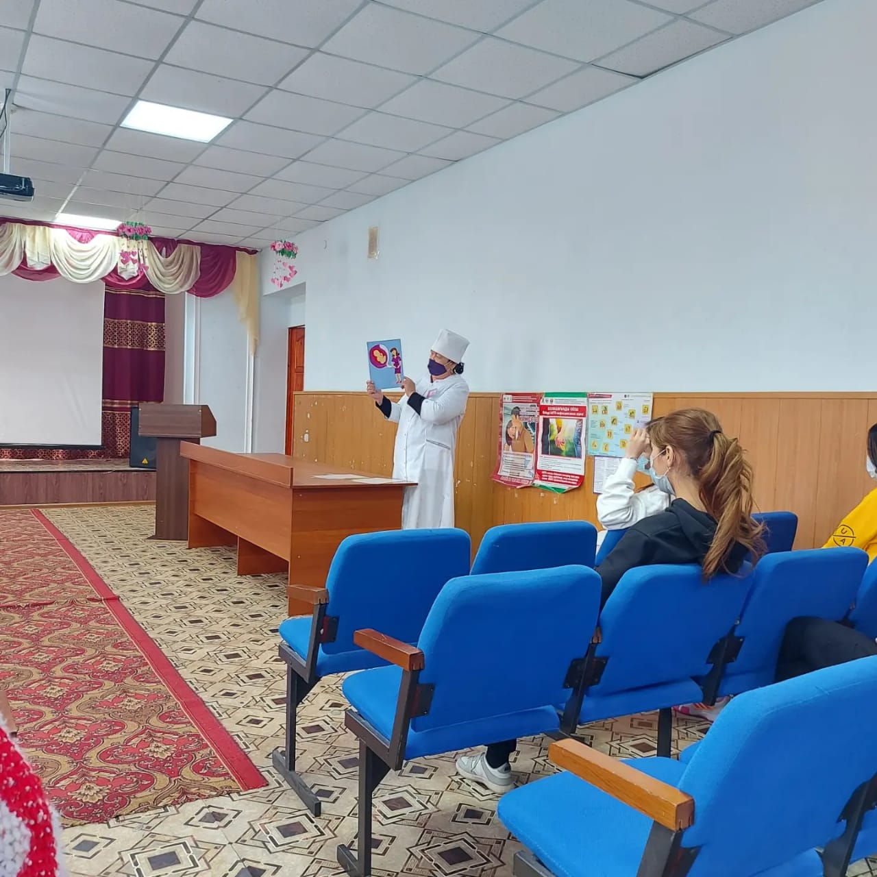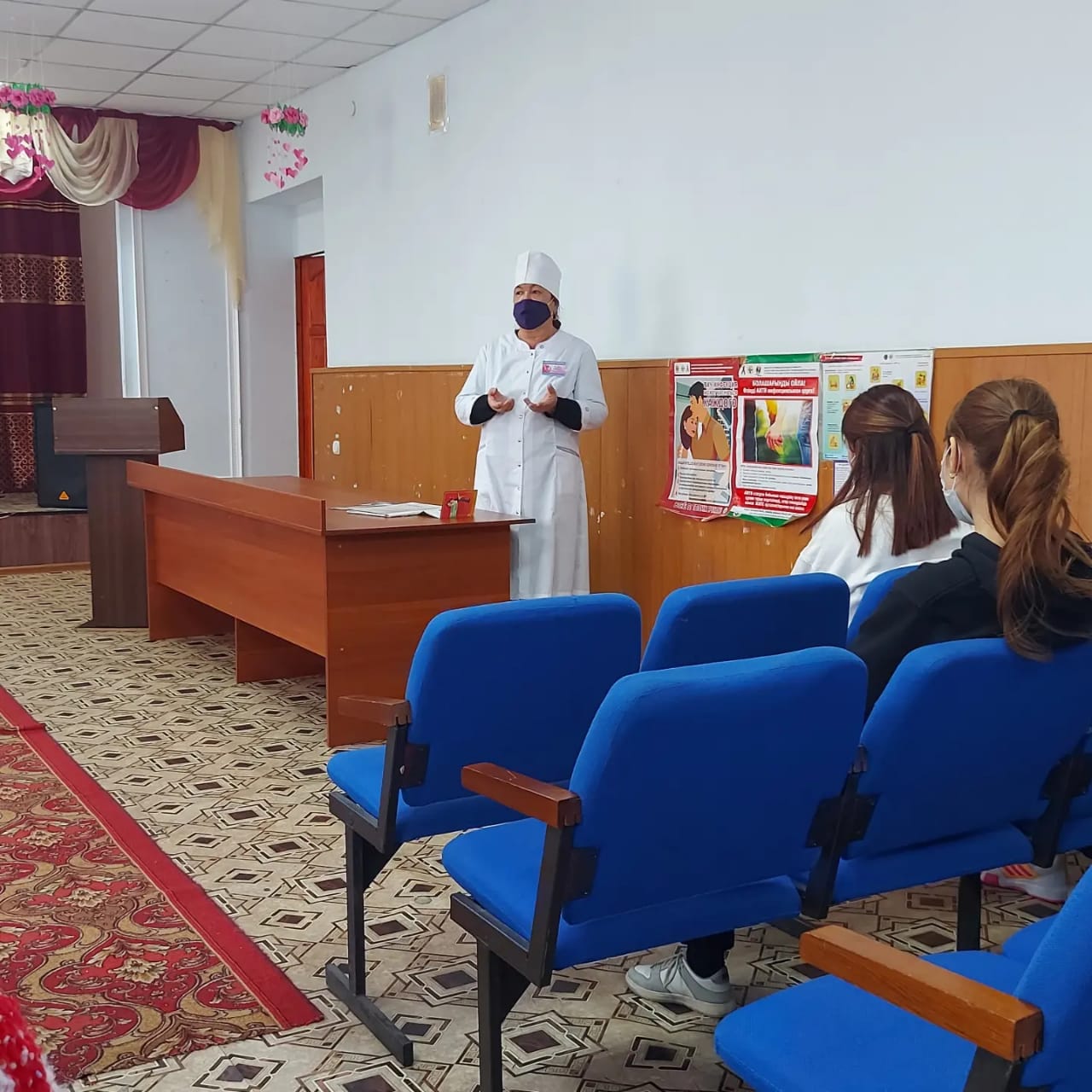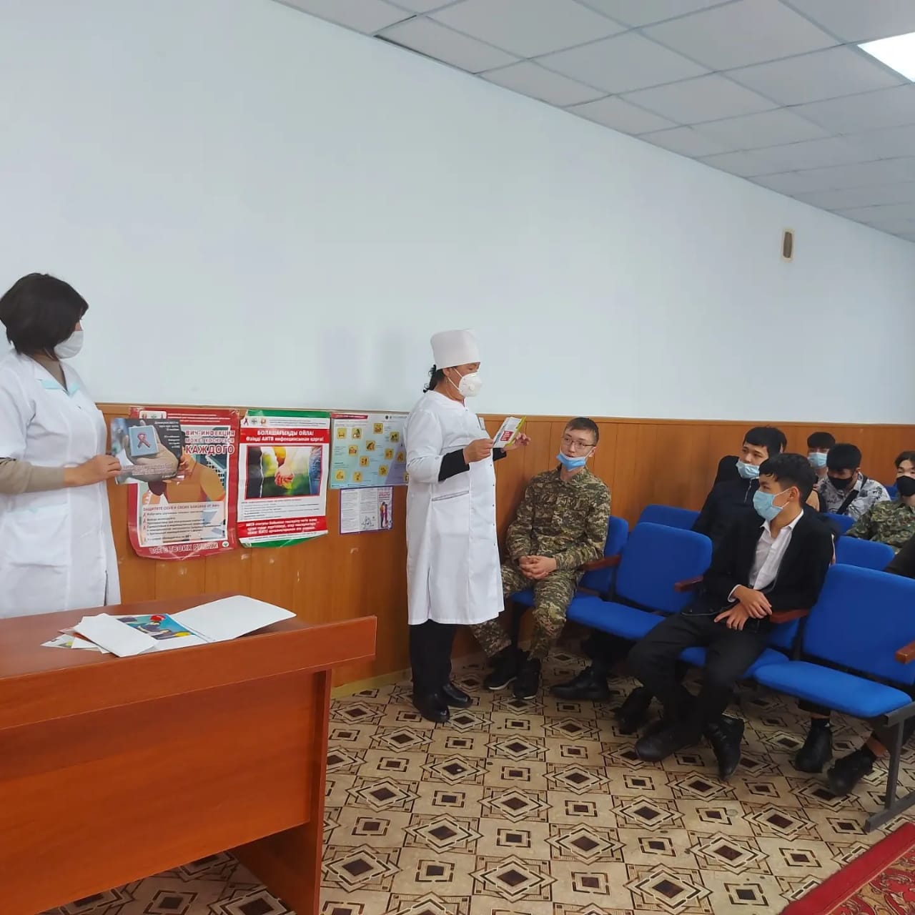 Аудандық аурухана бөлімінен С.Саткановнамен колледж медбикесі Т.Темирбаеваның қатысуымен "Жыныстық жолмен берілетін инфекциялық аурулар" тақырыбында студенттерге кездесу өткізілді