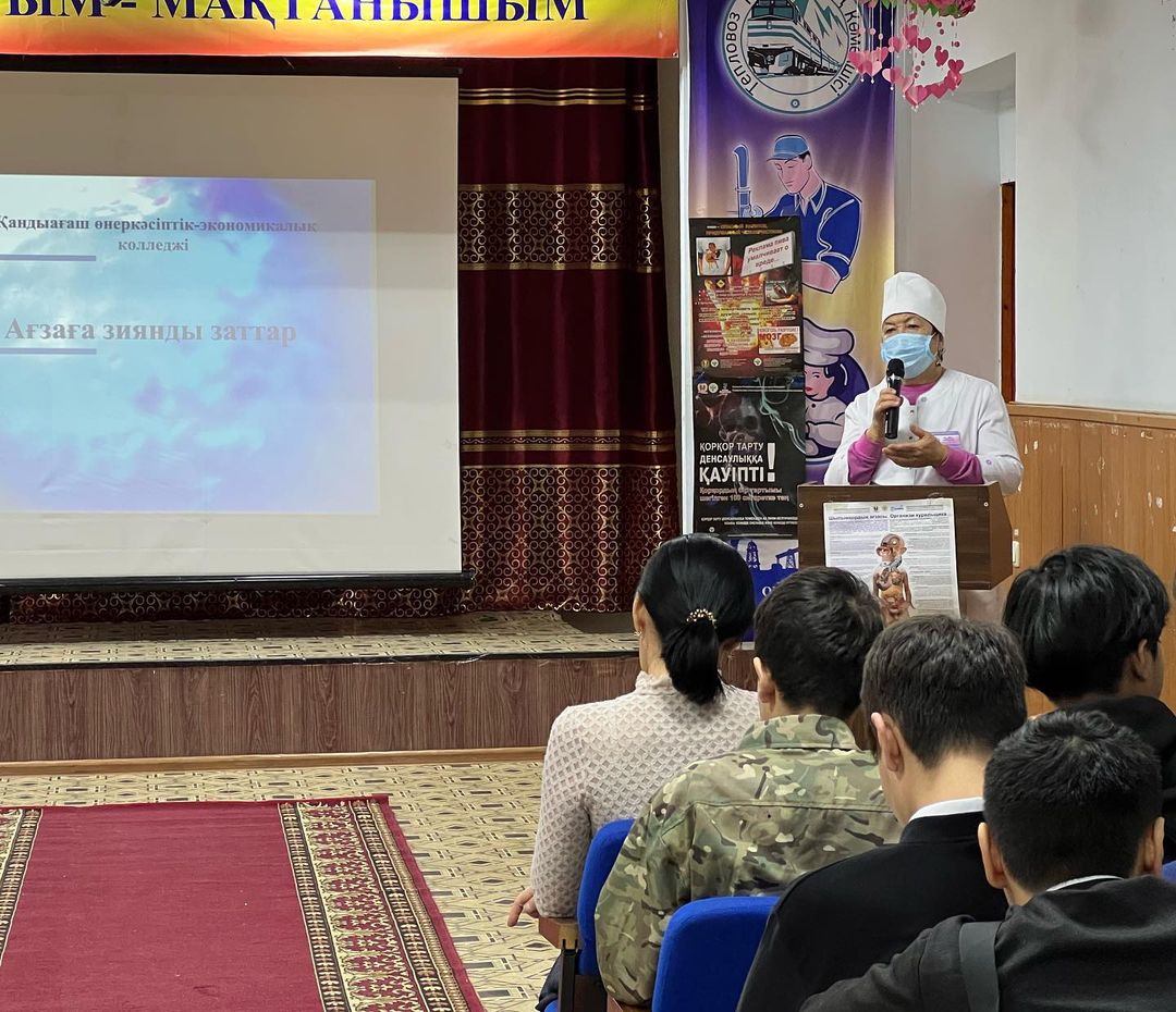 Аудандық аурухана бөлімінен С.Саткановнамен колледж медбикесі Т.Темирбаева, педагог-психолог А.Длимованың қатысуымен "Ағзаға зиянды заттар" тақырыбында студенттерге кездесу өткізілді…