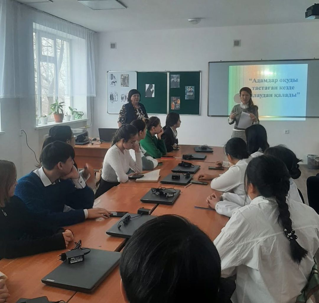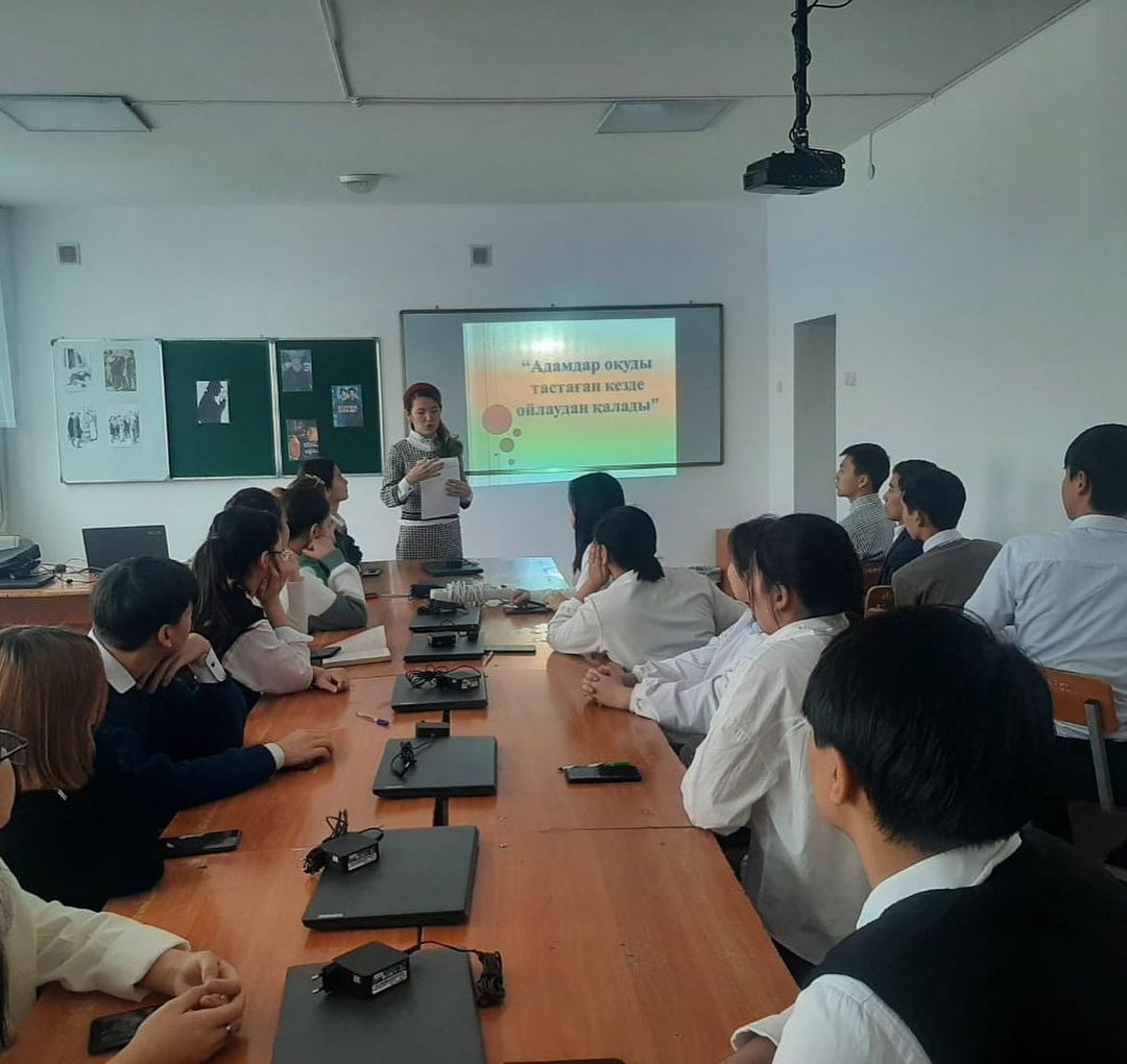 «Оқуға құштар колледж» тұжырымдамасының аясында білім алушылардың кітап оқуға деген қызығушылықтарын қалыптастыру,кітап оқуға ынтасын арттыру, көпшілік алдында өз ойын еркін жеткізу,тіл байлығын арттыруға ықпал етіп, кітаптың адам өміріндегі маңызын, білім алушыларды әдеби кітаптар оқуға насихаттау мақсатында директордың оқу жұмысы бойынша орынбасары М.Балымова, колледж кітапханашысы А.Сапарованың ұйымдастыруымен студенттер арасында «Адам оқуды тастаған кезде ойлаудан қалады» тақырыбында Артур Конан Дойлдың «Шерлок Холмс» кітабының мазмұнына негізделіп әдеби – ақпараттық сабақ өткізілді.