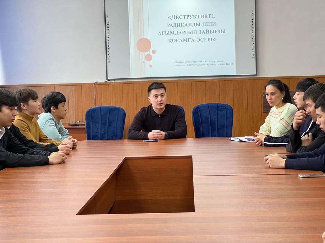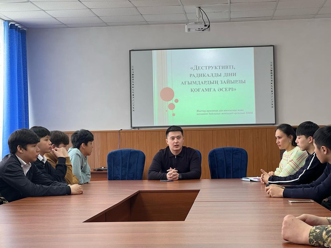 Орталықтың теолог маманы М.Увайсовтың қатысуымен жастарға “Радикалды деструктивті ағымдардың зайырлы қоғамға әсері” тақырыбында кездесу ұйымдастырылды.