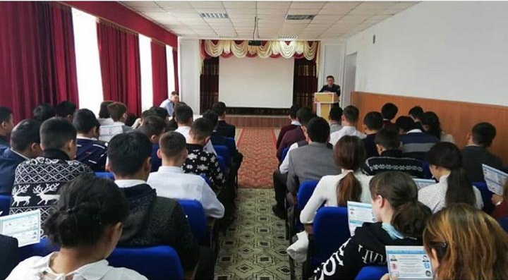 Колледж студенттері Ақтөбе ОПД ЖПҚБ ЮПТ аға инспекторы Мукумов Нұржан Алпысбайұлымен кездесті.