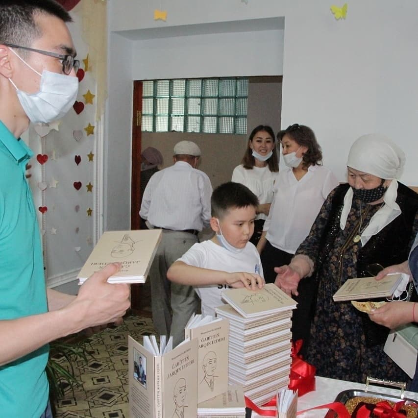 Мероприятие сопровождалось исполнением песни и чтением стихов Габита Толегеновича, в завершении мероприятия присутствующим раздали книги.